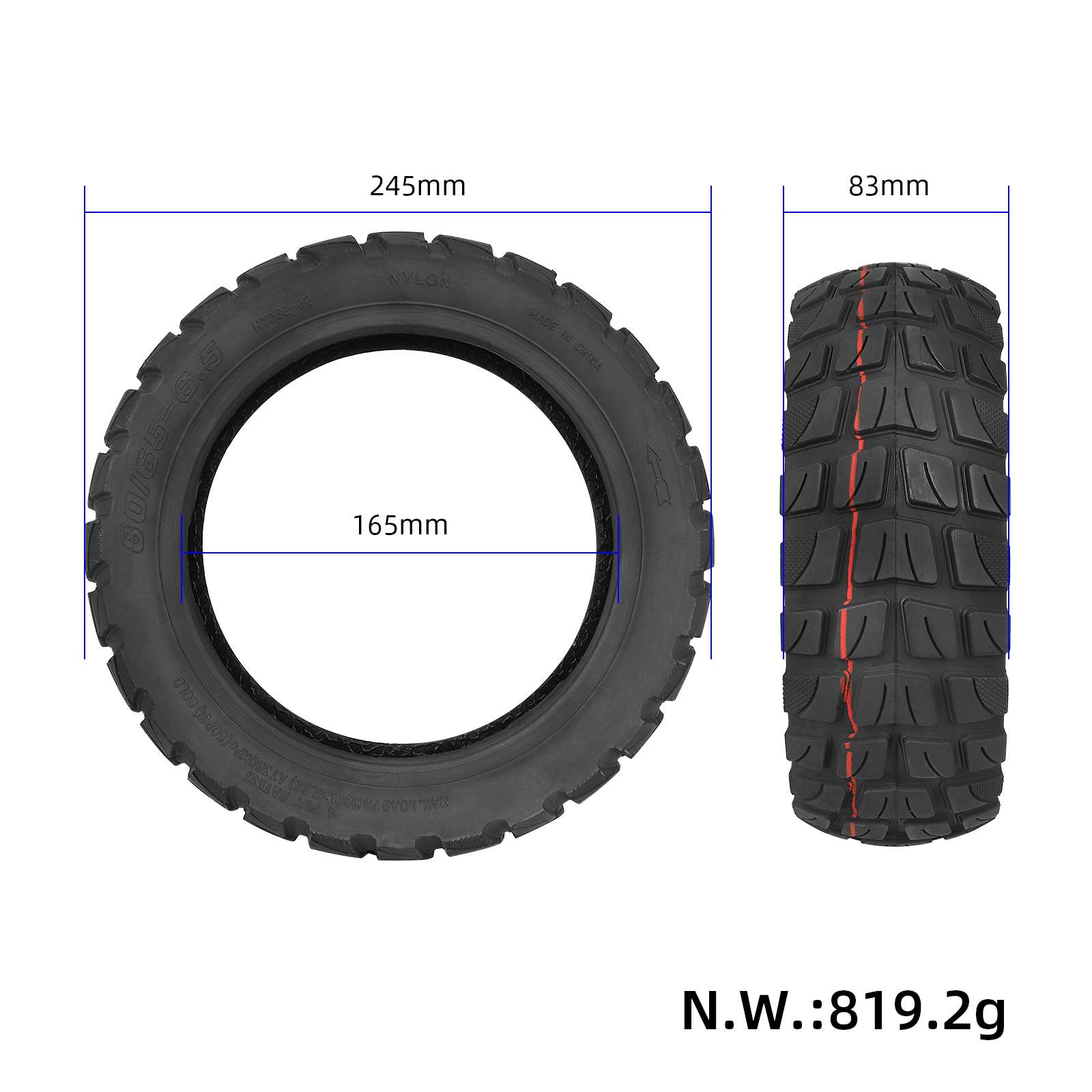 80/65-6.5 Off-road Tubeless Tire for KUGOO M4/M4 Pro Electric Scooter 10 Inch 80/65-6.5 Vacuum Tyre for KUGOO M4 M4 Pro Minimotors 10 Inch Durable Tires Part