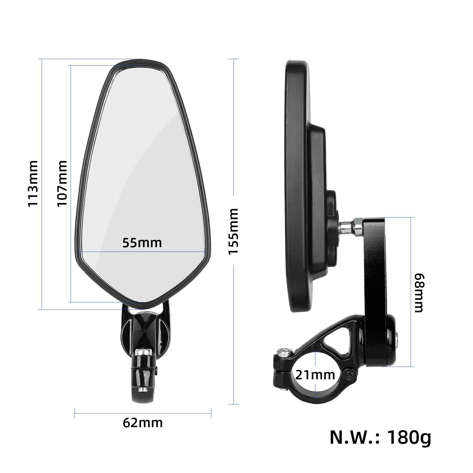 1 Pair Universal Motorcycle Electric Scooter Aluminum Mirrors Handle Bar End 7/8″ 22mm Mirrors Handlebar Bar End Mirror Glass CNC Aluminum Motorbike Scooter E-bike Side Mirrors
