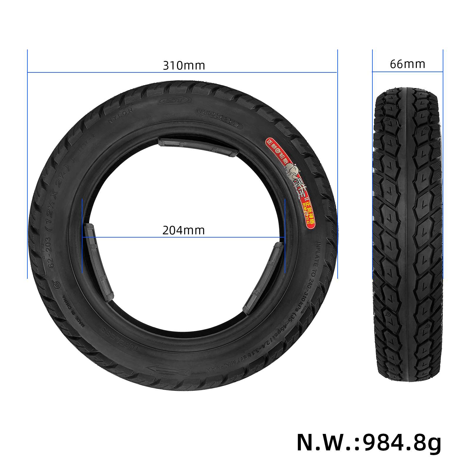 CST Tire 62-203(121/2*21/4) Generation Driving Tire 12-inch Electric Bicycle Tire 12 Inch Tubeless Tire (62 -203)12 1/2 X 2 1/4 Electric Scooter for Bike Stroller Urban Fits Many Gas 12×2.125 Tyre