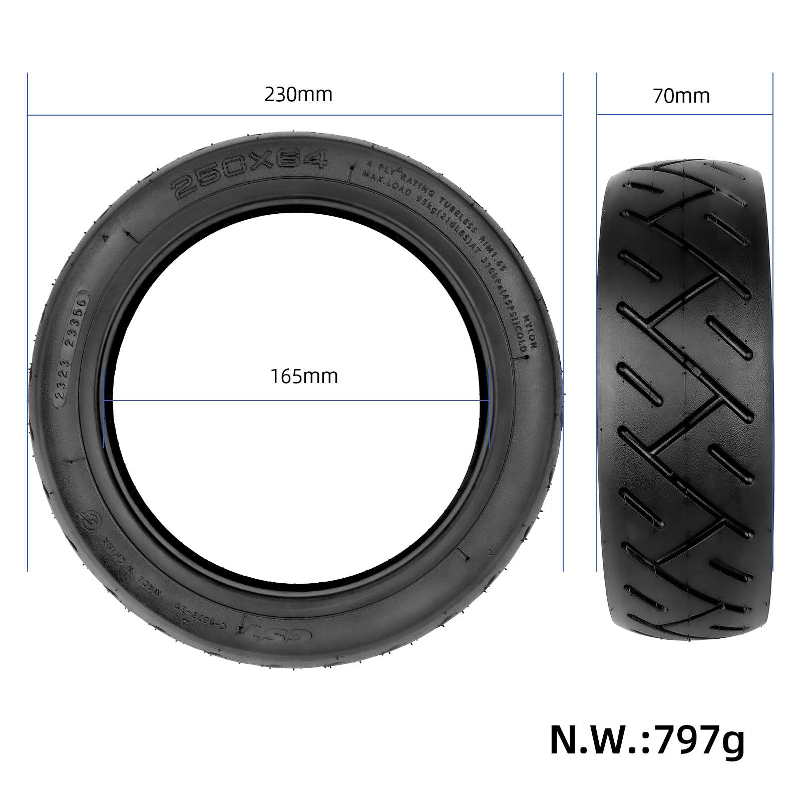 CST 250×64 Tire with Gel for Xiaomi 4 Ultra and Navee S65 scooter CST/Zhengxin Tire Electric Scooter 250*64 Self Repair Outer Tire Jelly Glue Anti Prick Liquid Tubeless Tyre