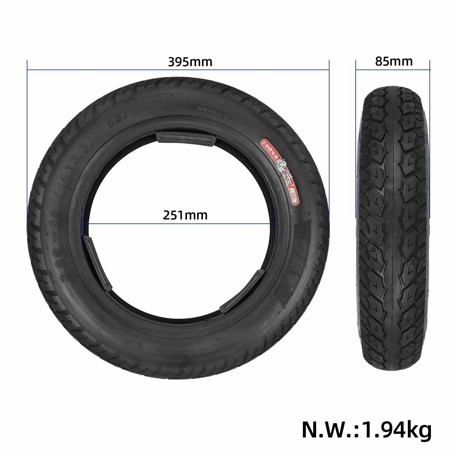 CST 3.00-10 Vacuum Tubeless Tires 14 Inch Anti Slip Commuting Tyre for Electric Scooter Motorcycle Electric Vehicle 14X3.2 Pedal Tires