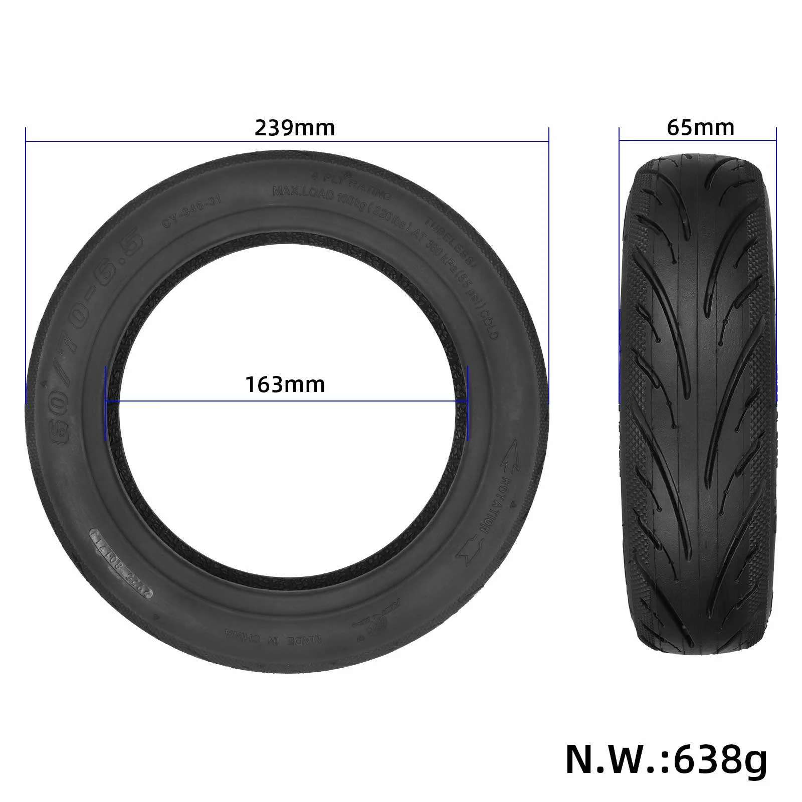 Original Yuanxing 60/70-6.5 Tubeless Tire 10 Inch for Segway Ninebot Max G30 Xiaomi Elite Electric Scooter Rubber Tubeless Pneumatic Tire