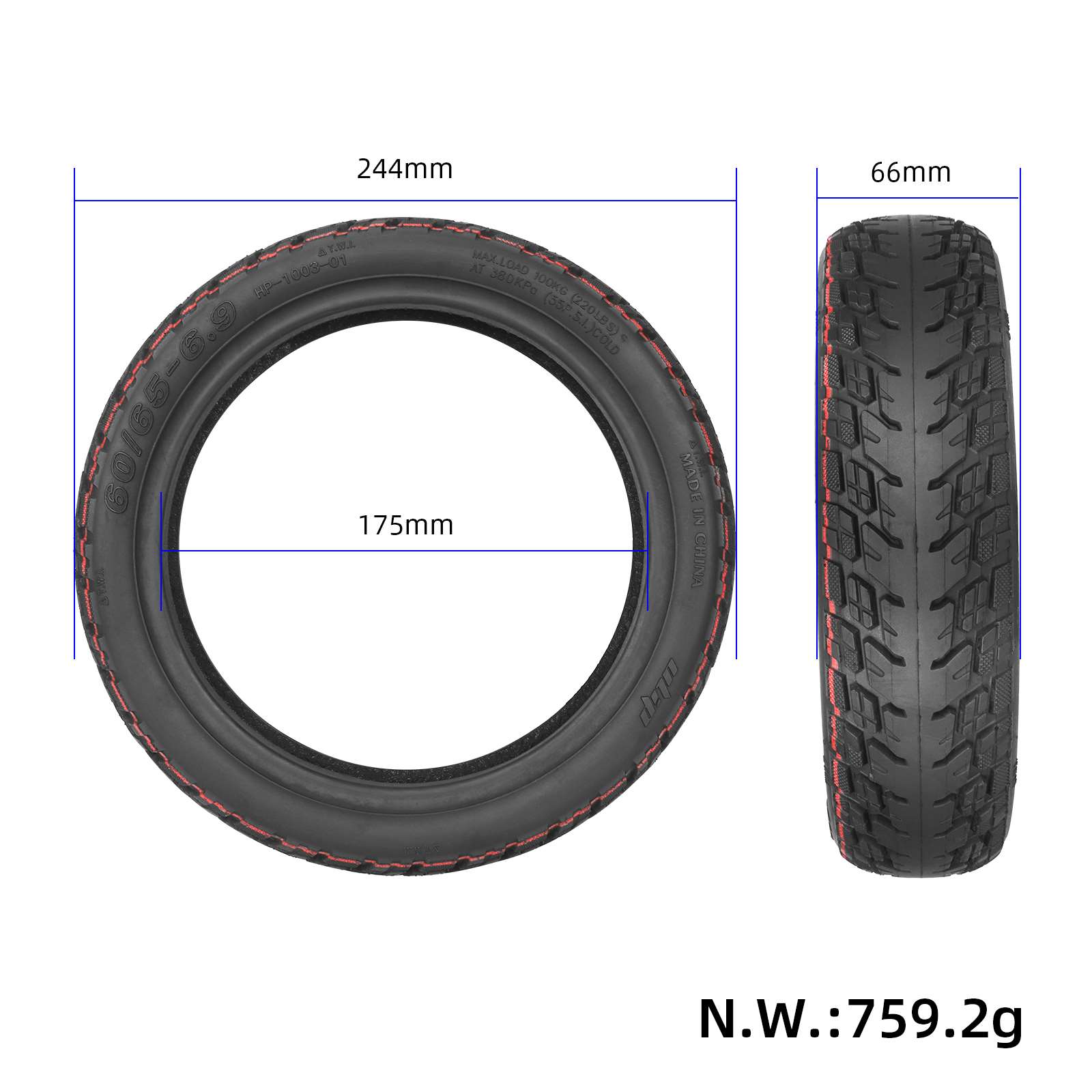 Ulip 60/65-6.9 Self-repairing Rear Wheel Tire with Gel Layer for Ninebot Ninebot Max G2 G2E G2DElectric Scooter Motor 60/65-6.9 Vacuum With Anti-puncture Gel Tires Parts