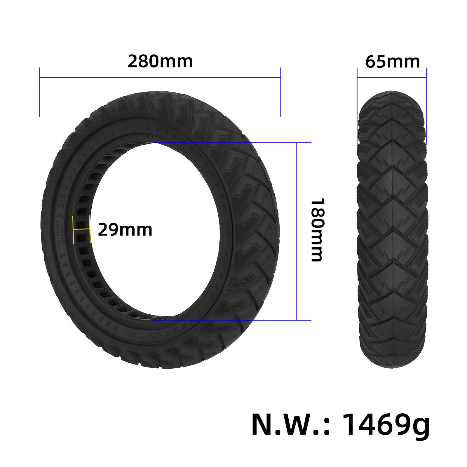 Ulip Black 12*2.125/12*2.5/12 1/2*2 1/4 Wing Pattern Off-road Solid Tire with Slot 28MM Ulip 12×2.125 Sold Tire 12*2.125 12*2.5 12 1 2*2 1 4 Tires Off-Road Solid Puncture-Proof Tire For Electric Scooters Puncture-Proof Tyre