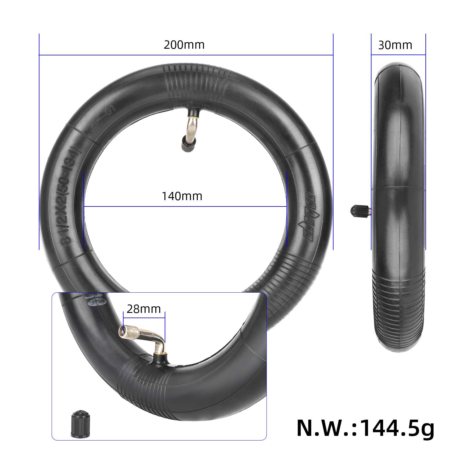 Ulip Reinforced 8 1/2*2(50-134mm) Inner Tube with 90 Degree Outward for Zero 9 scooter 8.5 inch Inner Camera 8 1/2*2(50-134) Inner Tube with 90 Degree Angle
