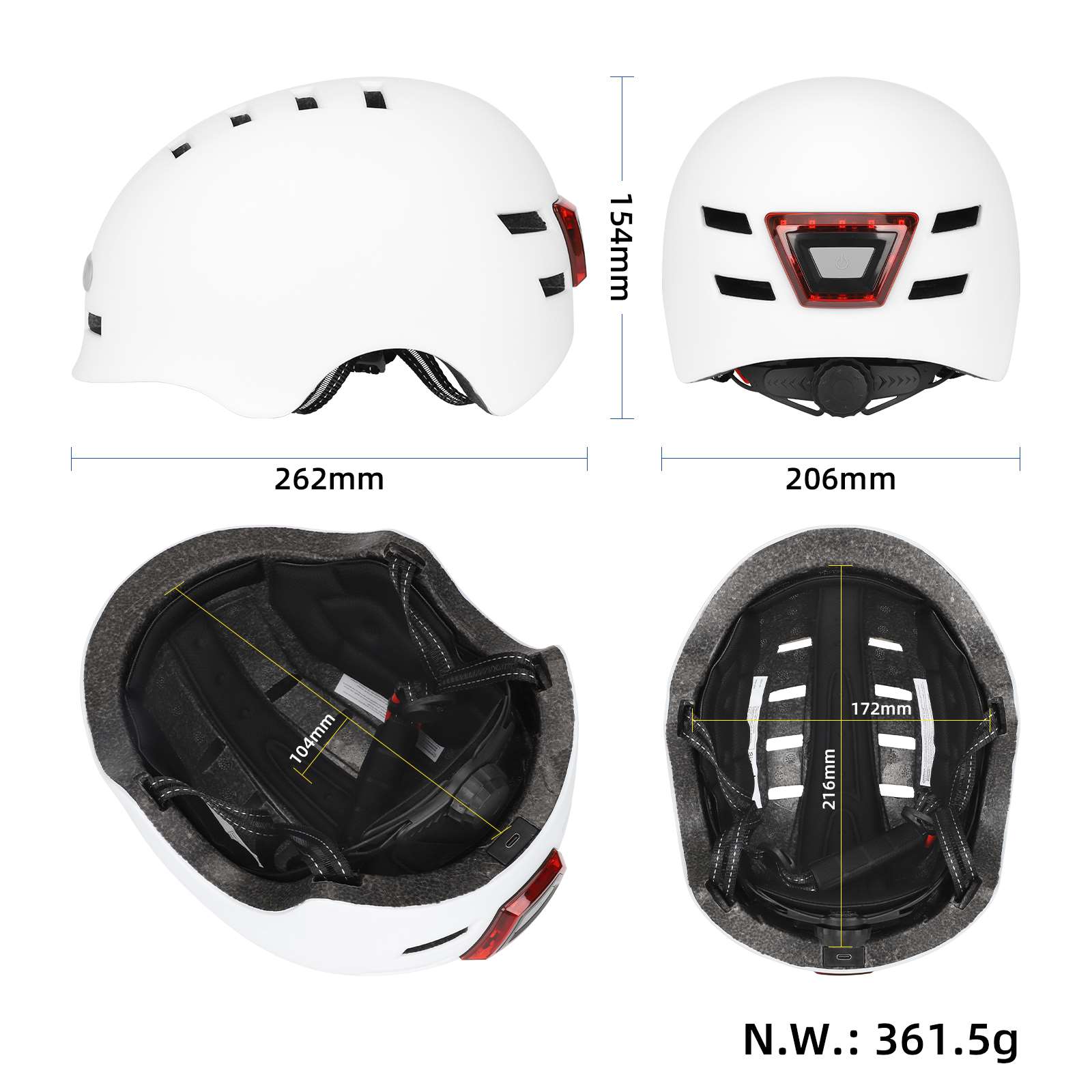White M Size Bike Helmets for Adults – Front and Rear LED Lights Adjustable Bicycle Helmet for Adults Men Women Scooter Helmet for Commuting, Road Biking, Skating, Scooter