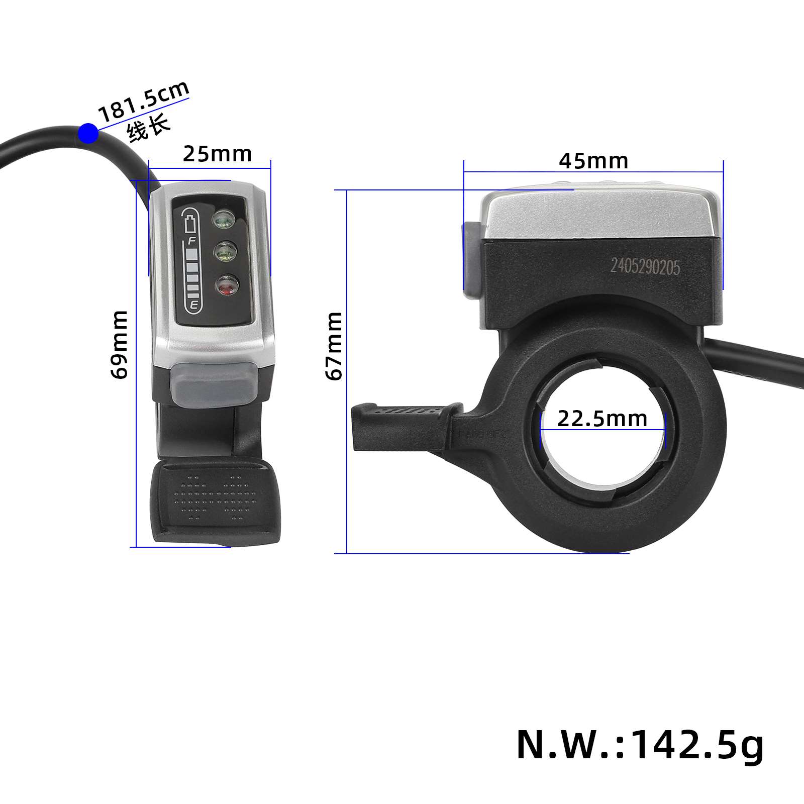 Wuxing 106DX 36V Power Display Finger Dial For Electric Bicycles with 36V Lithium Battery Electric Bicycles Electric Bicycles Mountain Bikes With Switch Power Display Finger Thumb Speed Regulator